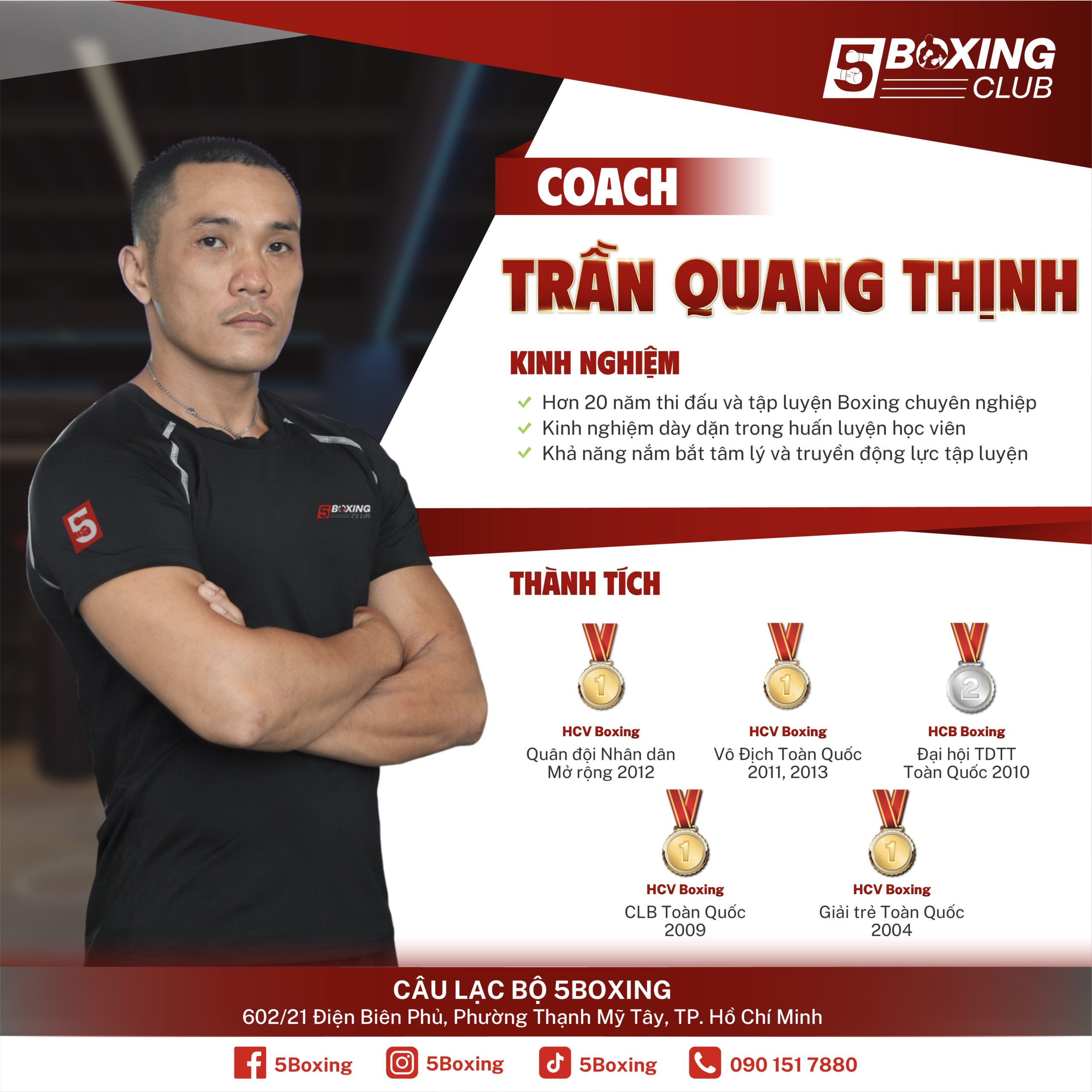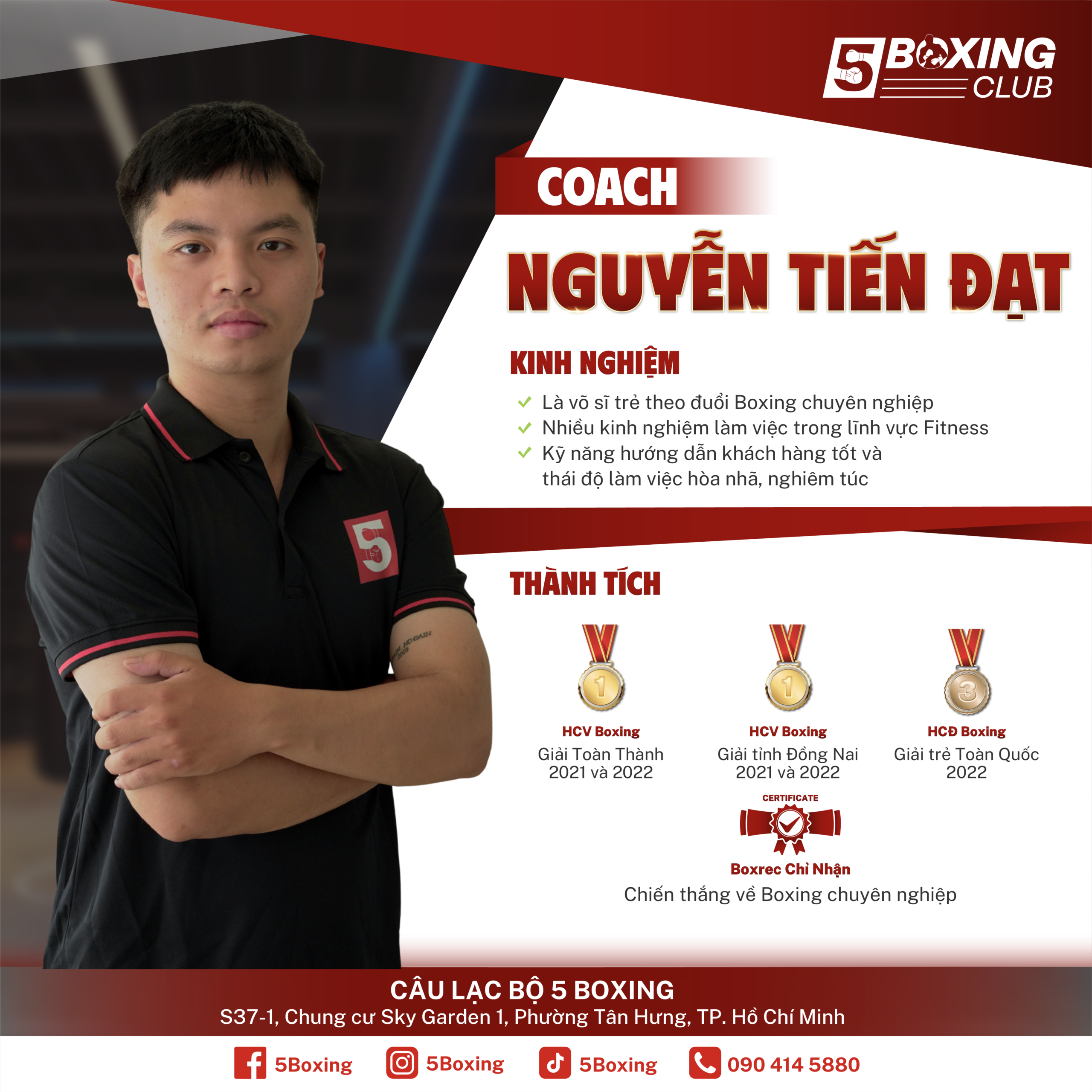 5Boxing tọa lạc tại các quận trung tâm TP HCM. Rộng rãi với đầy đủ trang thiết bị hiện đại chuẩn.